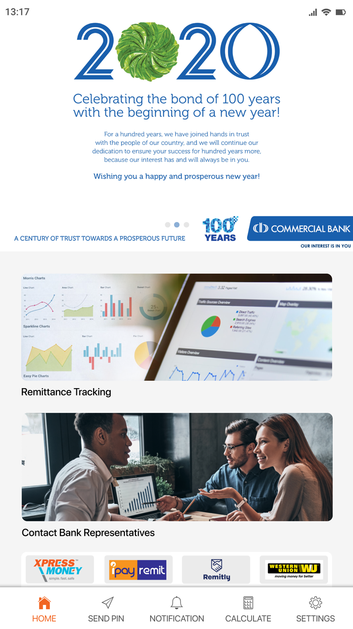 RemitPlus provides many banking related services like Remittance Tracking, Find ComBank Agent, Contact Bank ect.