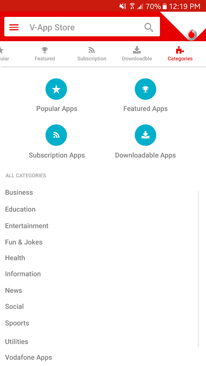 Vodafone appstore consist with all apps created for vodafone. The design has followed the guideline of Google material design.