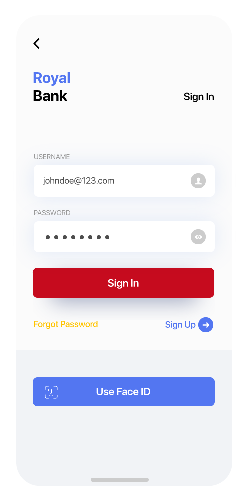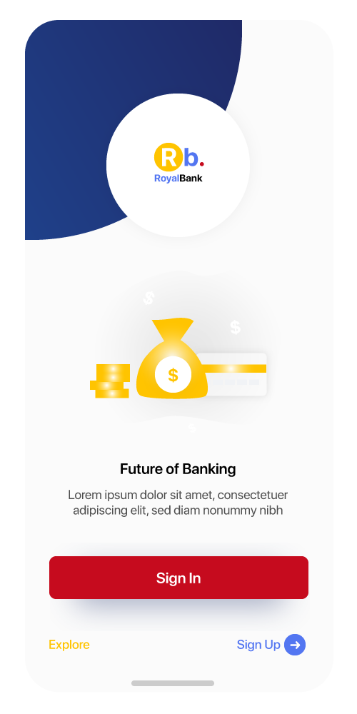 Royal Bank app design is a prototype for bank which include feature as add accounts to account, transfer money and pay any bill ect.