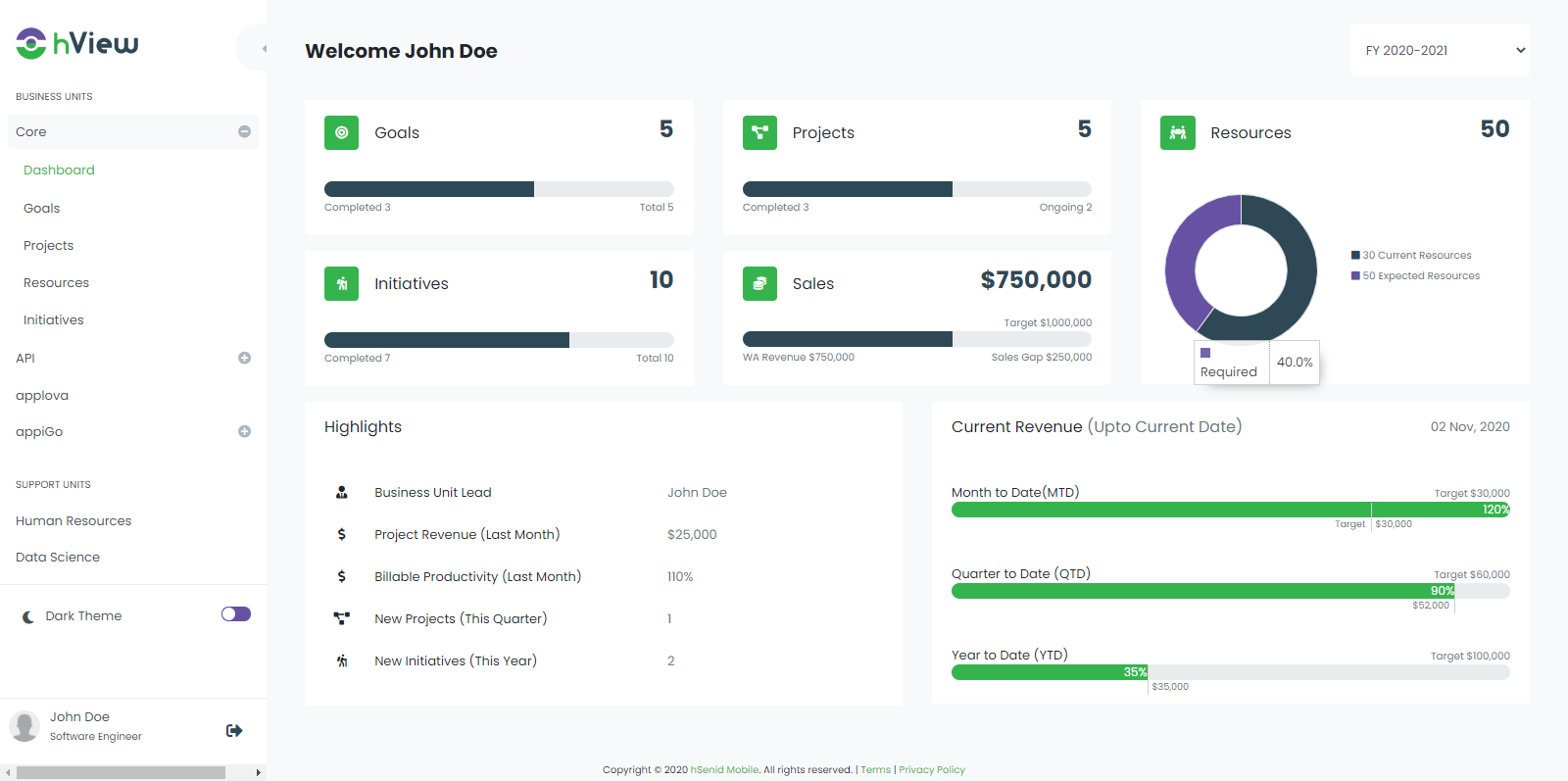 Project management platform for internal use for any company. This web consist with revenue targets charts comparing each months.